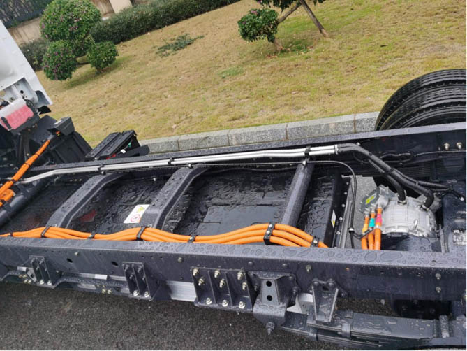 整车匹配100.46kwh高可靠性大单包电池,其综合工况满载续航里程可达到300公里,能够满足城配运输卡友一天的工作所需。且整车标配快充,充电80%仅需一小时,让卡友可以在工作间隙为车辆快速“补能”。 而且大单包电池还具备高安全性,电池包中置,成为底盘的一部分,提升扭转刚度105.3%,降低车辆遭侧面碰撞的危险性。电池包满足IP68最高防水标准,涉水深度可达300mm,满足各种恶劣环境工况使用。