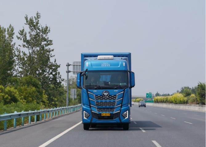 “云巅穿越之旅”第一天,从天津出发,走京港澳高速转入京昆高速,途径石家庄、太原、临汾等地,最后达到西安,累计穿越行程长达1200公里。虽然当天行驶路线处于平原地区,对欧曼星辉燃气自动挡重卡的行驶效率、节气水平是更大的考验。无需担心的是,在燃气超级动力链的赋能下,580马力大动力、2600N·m大扭矩、99.7%的行业第一传动效率以及领先节气技术加持下,能够保证整车起步、加速、超车更有力、更高效、更节气,满足用户高效运输、快速盈利的需求。