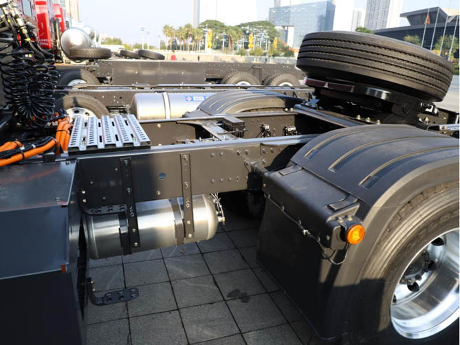 在降本增效方面,乘龙H5换电牵引车轻量化设计通过35项结构优化,将整车科学降重至9.7吨,相比同类产品减重超400公斤,不仅有效降低电耗,更助力用户实现“合规多拉”的创收优势。通过能量回收控制系统,车辆可实现超过20%的能量回收率,叠加智能驾驶行为优化控制技术,电耗较主流车型降低15%,按每年用500W度电计算,一年可省9万!