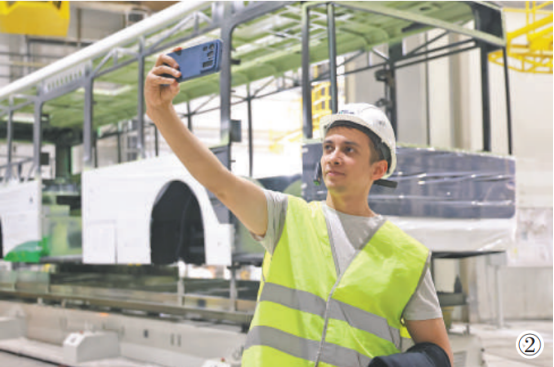 塔吉克斯坦记者与工厂生产线上的客车车身合影