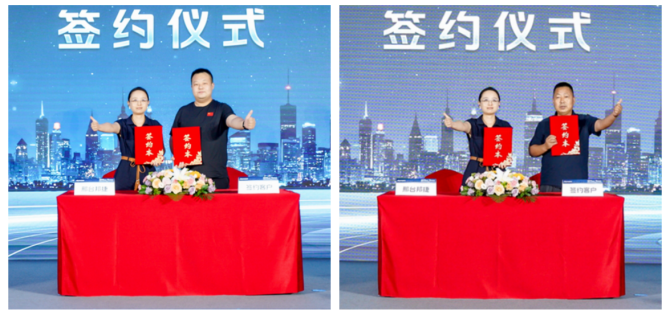 发布会现场,欧曼与区域内多家头部物流企业及大型车队达成深度战略合作,举行隆重签约仪式,一举签下96台欧曼银河 5 燃气车战略订单,同时完成首批交付。