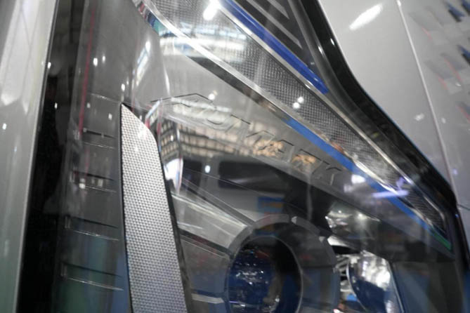 大灯位于车辆左右包角处,“L”型灯组设计使车辆前脸看起来更加精神。大灯采用LED光源,并配备有透镜,带来更优秀的照明效果。同时LED光源可靠性更高,使用寿命更长。