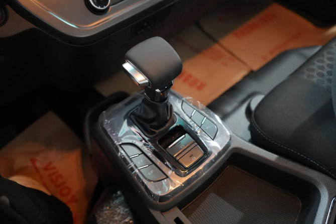变速箱挡杆位于主驾驶大腿右侧的控制台区域,电子手刹按钮也设计在这里。