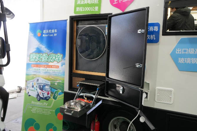 全自动洗衣机及抽拉式柴油灶设计在箱体外侧,便于使用,同时与车内空间进行隔离。