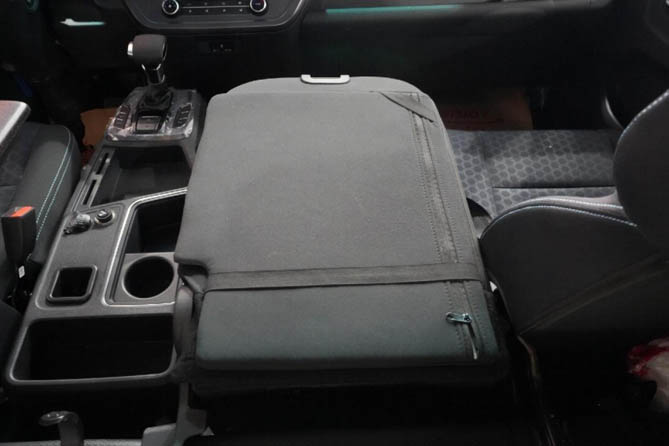 副驾驶座椅的中部靠背可进行折叠,从而便于人员在前后之间周转。同时,放倒三排座椅,打开中部座椅的折叠背板,则又是一个可以提供休息的简易卧铺。