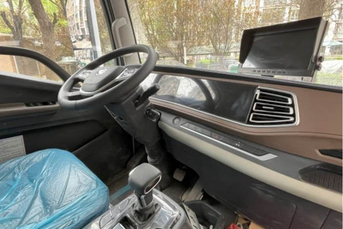 考虑到作业的环境和工况相对特殊,传统动力自卸车长期以来坚持采用手动挡变动箱配置。随着纯电动技术路线的创新,福田瑞沃纯电动自卸车在采用自动挡AMT变速箱的基础上,还进一步提升了内饰乘用化水平,主驾采用气囊减震座椅,并加强腿部和腰部的支撑作用,以减缓驾驶疲劳;副驾驶座椅可以放平,为驾驶员提供必要的休息空间;行车仪表和中控屏采用双联屏设计,具备手机互联、倒车影像、地图导航等功能。