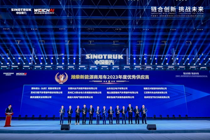 2024年1月8日-9日,以“链合创新 挑战未来”为主题的中国重汽·潍柴新能源商用车2024年全球供应链战略合作伙伴大会在石家庄召开。山东重工集团党委副书记、副总经理,中国重汽集团党委书记、总经理王志坚出席会议,并作《链合创新 挑战未来》主旨演讲。来自全球的1000余家供应链合作伙伴齐聚一堂,共同谋划绿色、韧性、可持续的供应链新生态网络。