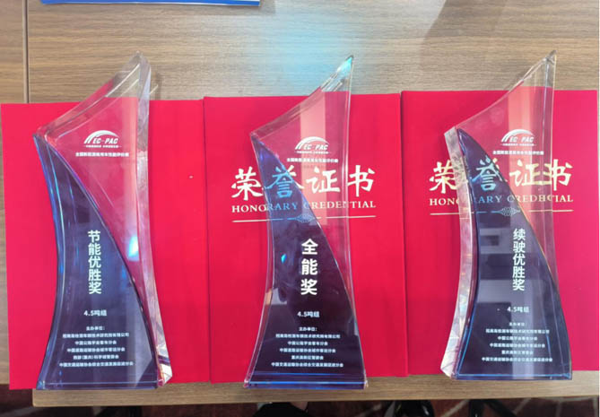 此次大赛邀请来自全国23家主流车企的25款车型共同角逐“节能优胜奖”“续驶优胜奖”“动力优胜奖”三项单项奖以及一个“全能奖”。帅铃ES6纯电轻卡基于江淮1卡新能源专属纯电平台,拥有能耗低续航长、动力强效率高、高配置更舒适等多项核心价值,从4.5吨组的众多新能源轻卡中脱颖而出,一举斩获该大赛唯一的全能奖以及节能优胜奖、续驶优胜奖两项单项奖,成为赛场上最靓的轻卡!