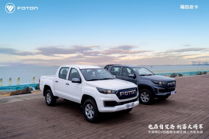 2025年双十一,“电启自贸港,创富大将军” 福田大将军EV创客版华南区域上市发布会在海南海花岛盛大启幕,超级纯电大皮卡重磅上市,售价为11.98万元起。