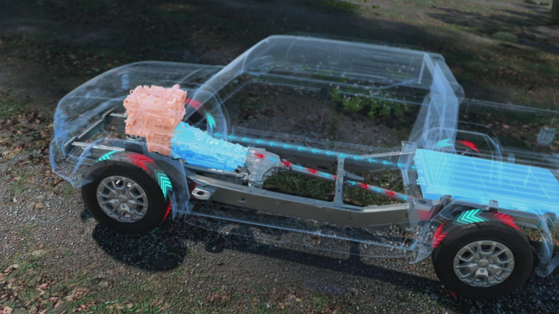 最后,也是最具想象空间的一点,是柴混技术带来的“电力自由”。传统皮卡受限于12V的小电池和发电机,电气系统能承载的科技功能非常有限。而威麟P3X的柴混系统,核心是一块大容量动力电池和高压电气架构。这套系统除了驱动车辆,更成为了整车电子电气系统的“能量后盾”。