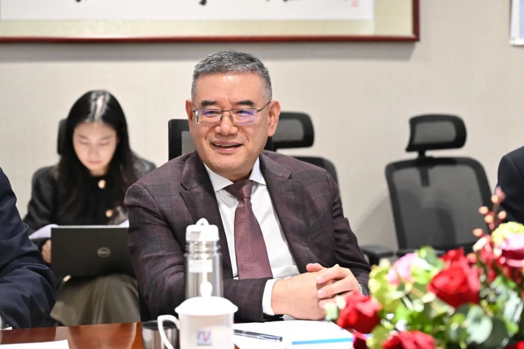 3月14日上午,谭旭光到访韦立国际新加坡总部,韦立国际集团董事长孙修顺迎候,双方团队深入洽谈。