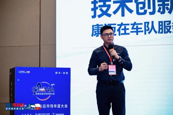 在商用车维修行业发展大会上,康迈后市场销售经理王仁坊先生围绕行业趋势、工程创新成果与车队服务生态价值作主题演讲:“技术创新推动行业协同,康迈在车队服务的生态价值探索”,探讨如何通过技术让“车队—物流—维保”实现更高效的协同。