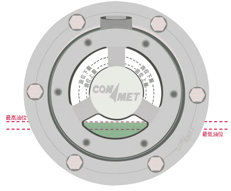 通过端盖透明视窗观察油位,正常应位于上下刻度线之间。若油位过高,需放出多余油液;若油位偏低且无泄漏,则及时补充。油质正常应为墨绿色,如出现乳化发白或含杂质,则需更换润滑油。