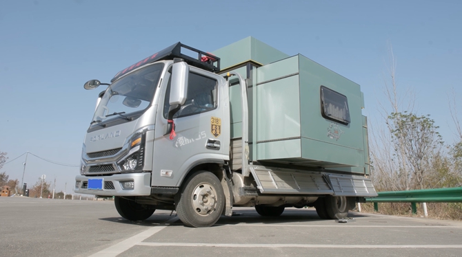 对于运输房车箱体而言,车辆的承载能力直接决定了房车“底气”。“这辆车的底盘很硬实!大梁是高强钢的直通大梁,后桥是一体精铸后桥,板簧加厚多片簧,很能拉。你再看我这个房车箱体,用料也很扎实,2吨重!但这车拉着我的房车箱体,严丝合缝,下面的板簧没啥变化,即便行驶在颠簸路面,车身也稳得很。”血春晓告诉记者。“开着这车,哪都能去!”这份从容背后,是领航G5-F28T气体机超强承载力的保驾护航。