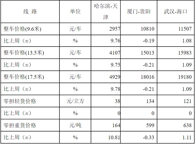 分车型看,各车型指数环比略微回升。其中,整车指数为1026.13点,比上周回升0.01%;零担轻货指数为1020.21点,比上周回升0.03%;零担重货指数为1025.21点,比上周回升0.02%。