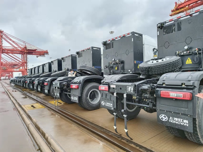 此次交付的上汽红岩充换一体纯电动牵引车,充分结合了连云港港口实际使用场景,全面强化了车辆的环保性、舒适性和安全性。