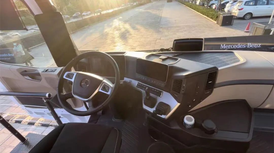与此同时,国产化后的奔驰Actros与奔驰Actros C在外观方面基本延续了“高颜值”的基因,采用的是高顶双卧纯平地板 Streamspace流线型驾驶室,高端配置车型还拥有12.3英寸+10.25英寸高清液晶显示屏,完全媲美奔驰乘用车。另外,主副驾装配的是带通风加热和按摩功能的气囊座椅,座椅后方布置了上下卧铺,为司机提供了一个舒适的“移动之家”。而且,这个“大块头”还具有“大智慧”,是行业内唯一具备行人识别功能及量产级L2辅助驾驶系统的重卡。