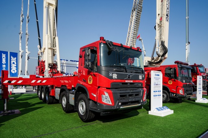 在本次展会上,三一重工、徐工集团、中联集团、中集天达等上装企业,携基于沃尔沃底盘打造的登高平台消防车、大跨度举高喷射消防车等车型惊艳登场。这些设备卓越的性能背后,深度融合了沃尔沃卡车的核心技术优势,成为展会焦点之一。