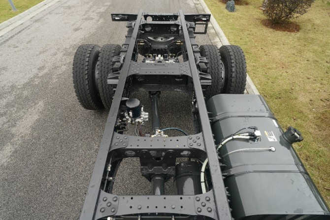 可靠承载是自卸车的立身之本。乘龙M3 4×2极限自卸车采用282(8+4)直通梁高强钢车架,一次冲压成型,配合前11后12+9加厚板簧,构筑起稳固的承载骨架。加宽制动器的配备,显著提升了连续下坡工况下的制动安全性,有效控制热衰退。